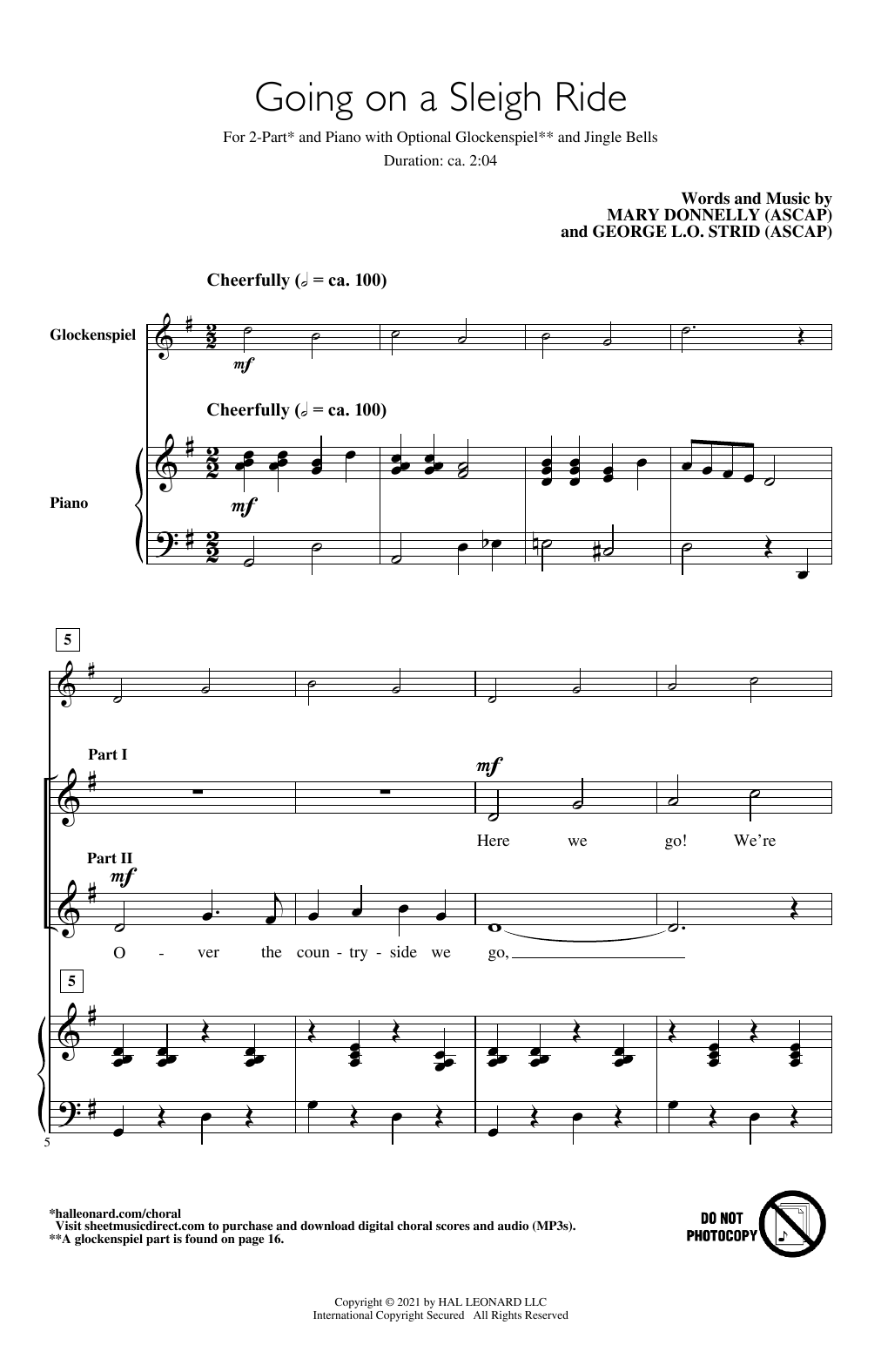 Download or print Mary Donnelly and George L.O. Strid Going On A Sleigh Ride sheet music, chords and digital score arranged for 2-Part Choir. This Christmas score includes 15 page(s).