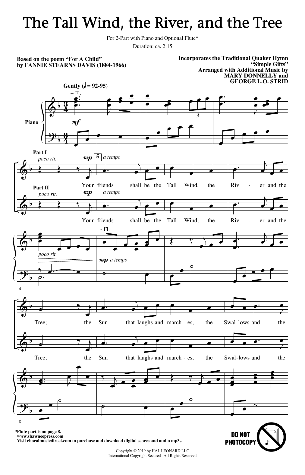 Download or print Mary Donnelly & George L.O. Strid The Tall Wind, The River And The Tree sheet music, chords and digital score arranged for 2-Part Choir. This Concert score includes 7 page(s).