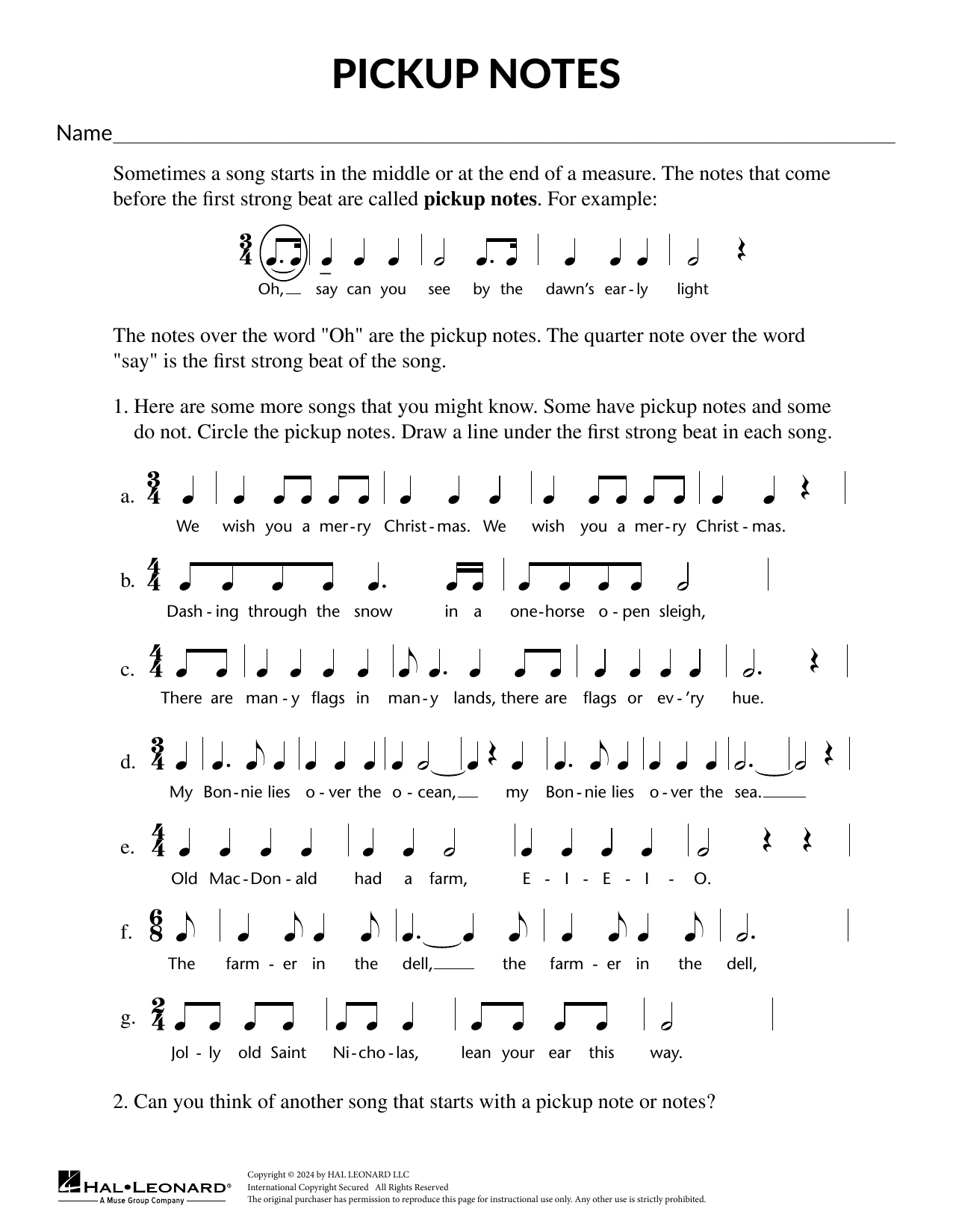 Download or print Mary Donnelly Pickup Notes sheet music, chords and digital score arranged for Theory Worksheet. This Instructional score includes 2 page(s).