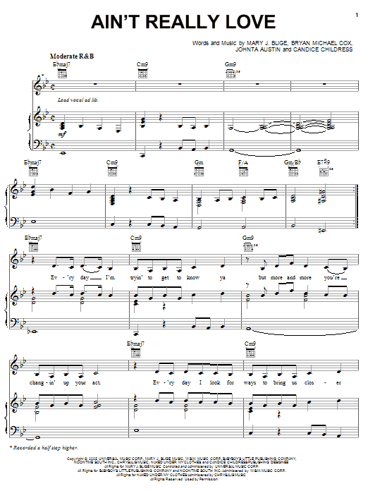 Download or print Mary J. Blige Ain't Really Love sheet music, chords and digital score arranged for Piano, Vocal & Guitar Chords (Right-Hand Melody). This Hip-Hop score includes 8 page(s).