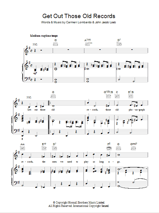 Download or print Mary Martin Get Out Those Old Records sheet music, chords and digital score arranged for Piano, Vocal & Guitar Chords. This Pop score includes 3 page(s).