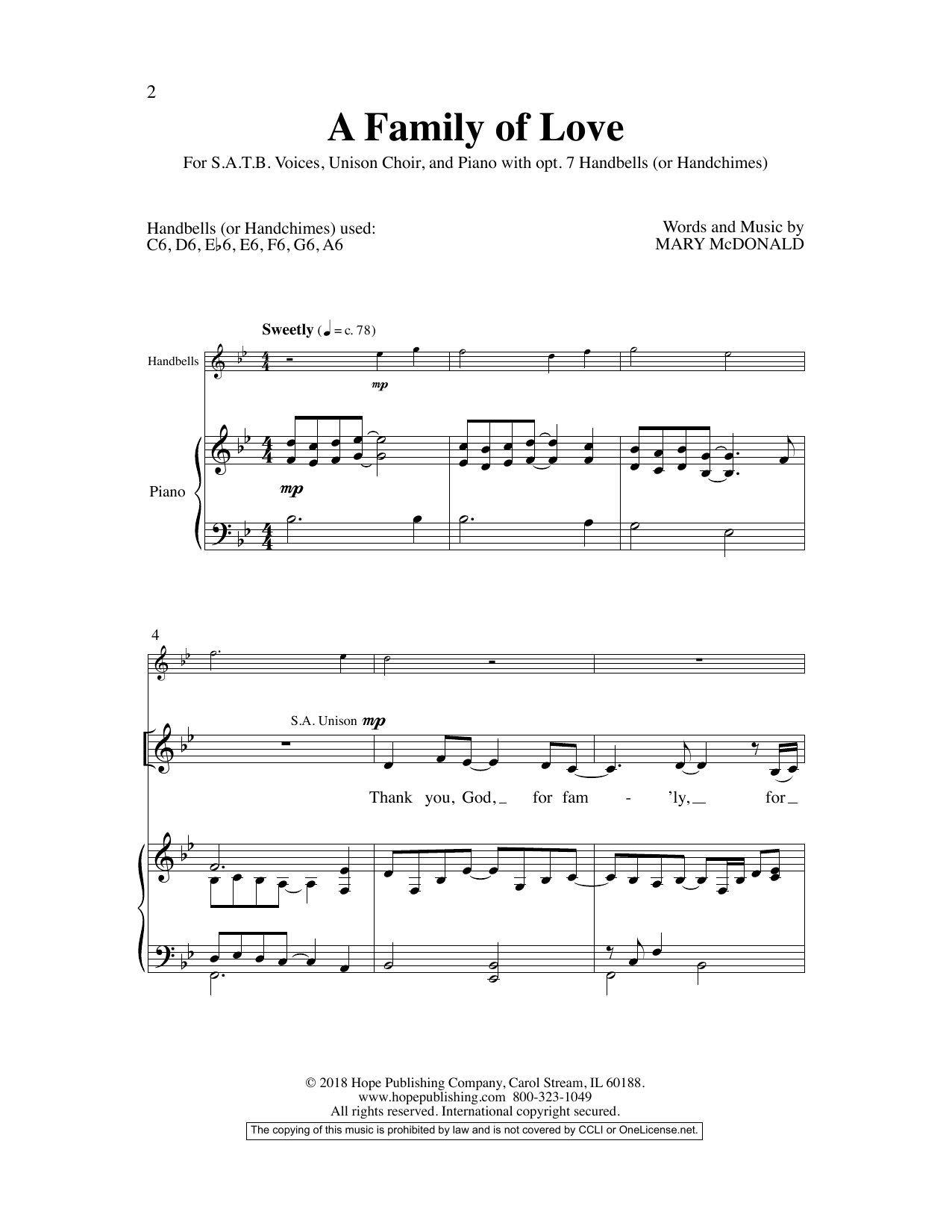 Download or print Mary McDonald A Family Of Love sheet music, chords and digital score arranged for SATB Choir. This Easter score includes 15 page(s).