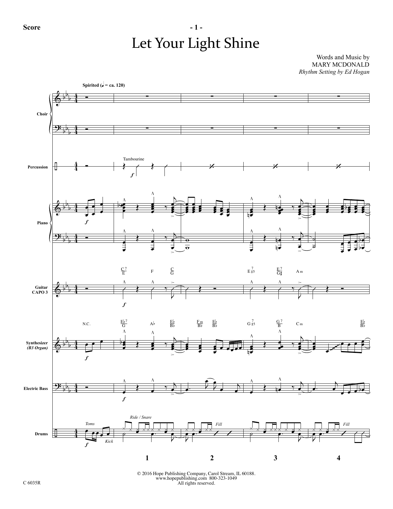 Download or print Mary McDonald Let Your Light Shine - Full Score sheet music, chords and digital score arranged for Choir Instrumental Pak. This Gospel score includes 24 page(s).
