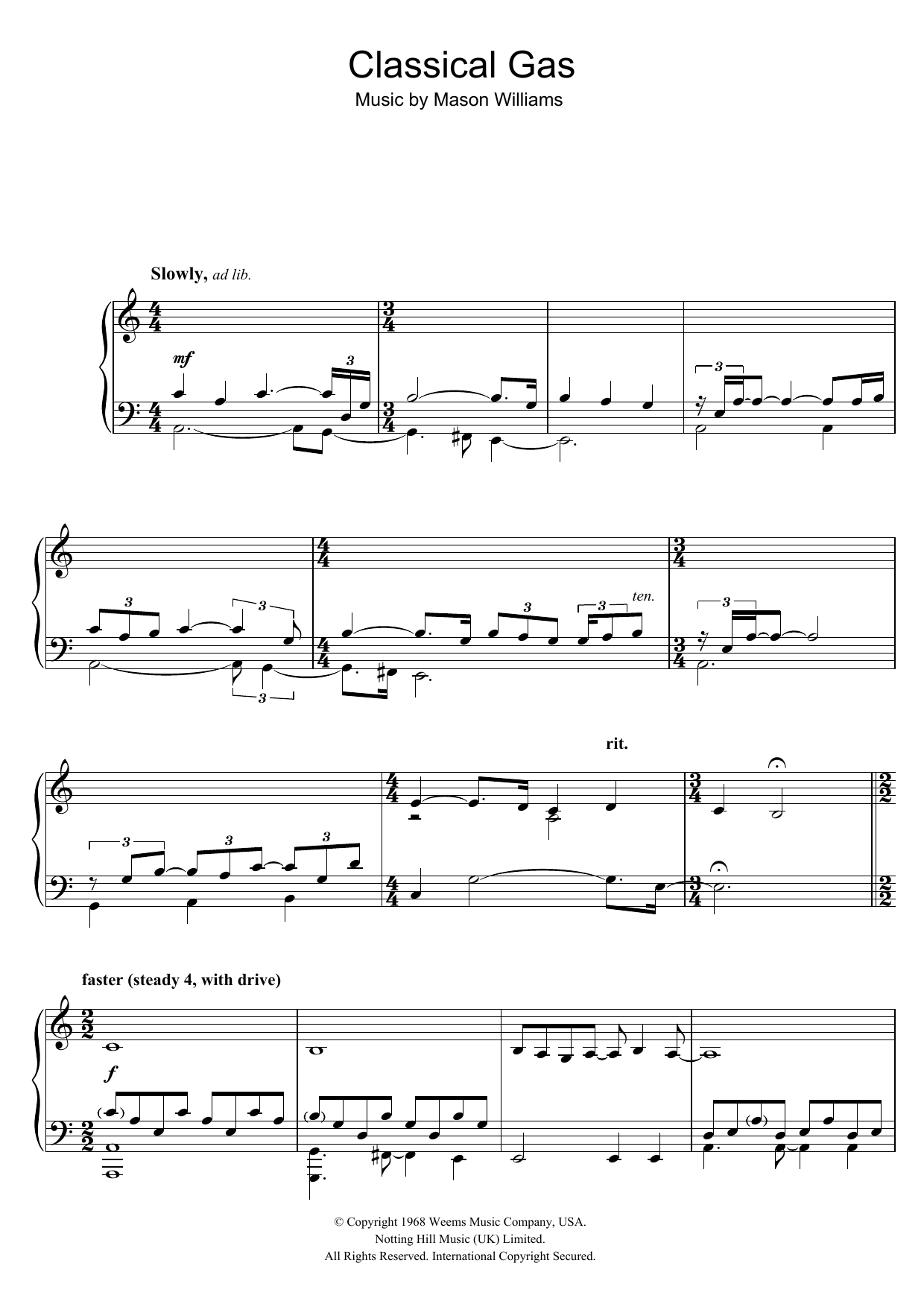 Download or print Mason Williams Classical Gas sheet music, chords and digital score arranged for Easy Ukulele Tab. This Rock score includes 3 page(s).