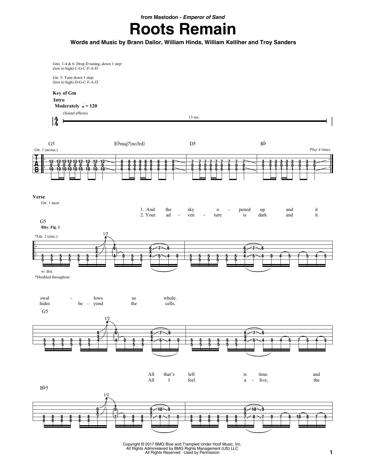 Download or print Mastodon Roots Remain sheet music, chords and digital score arranged for Guitar Rhythm Tab. This Metal score includes 7 page(s).
