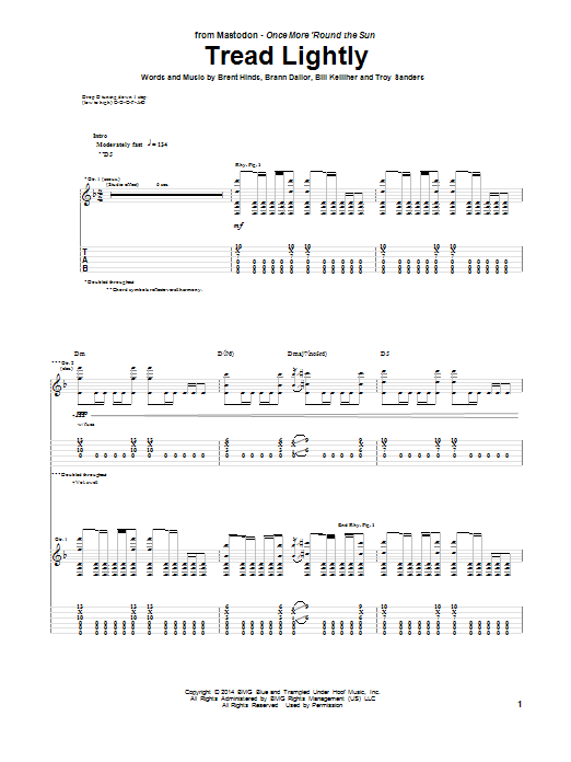 Download or print Mastodon Tread Lightly sheet music, chords and digital score arranged for Guitar Tab. This Pop score includes 9 page(s).