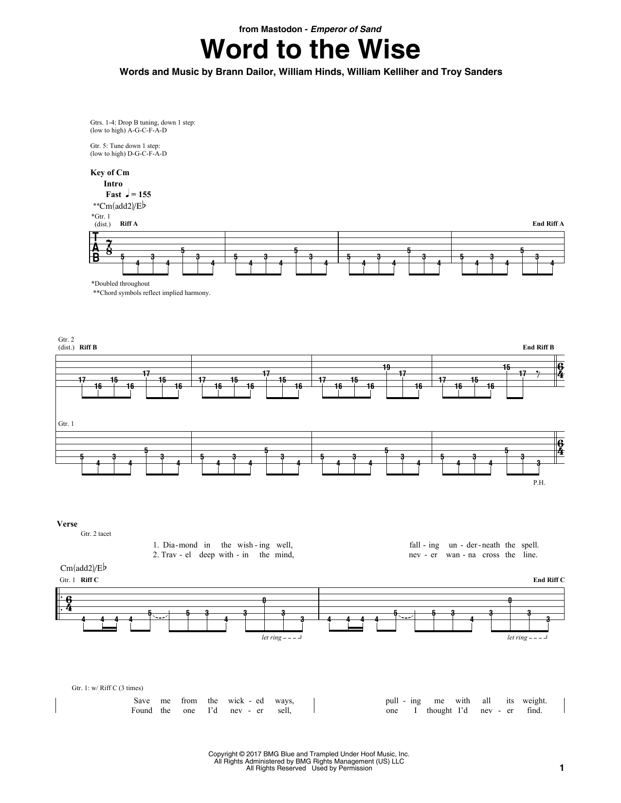 Download or print Mastodon Word To The Wise sheet music, chords and digital score arranged for Guitar Rhythm Tab. This Metal score includes 6 page(s).