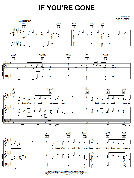 Download or print Matchbox Twenty If You're Gone sheet music, chords and digital score arranged for Lead Sheet / Fake Book. This Pop score includes 2 page(s).