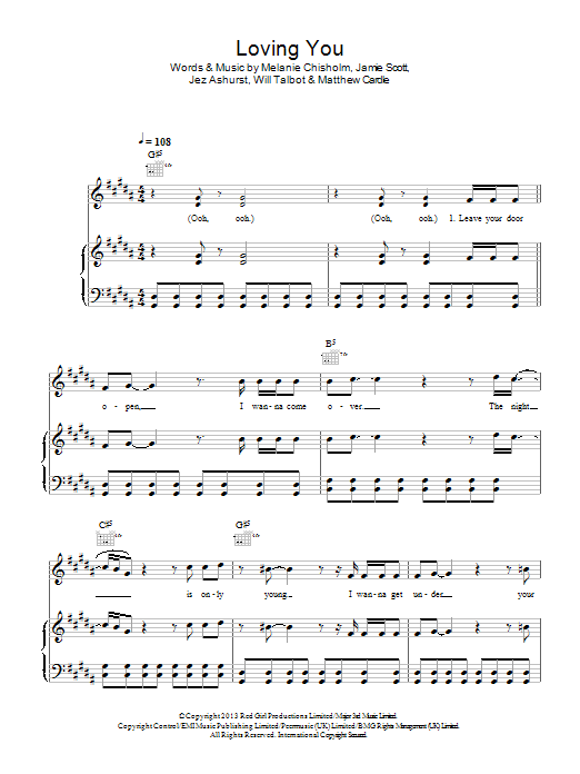 Download or print Melanie C Loving You sheet music, chords and digital score arranged for Piano, Vocal & Guitar Chords. This Pop score includes 8 page(s).