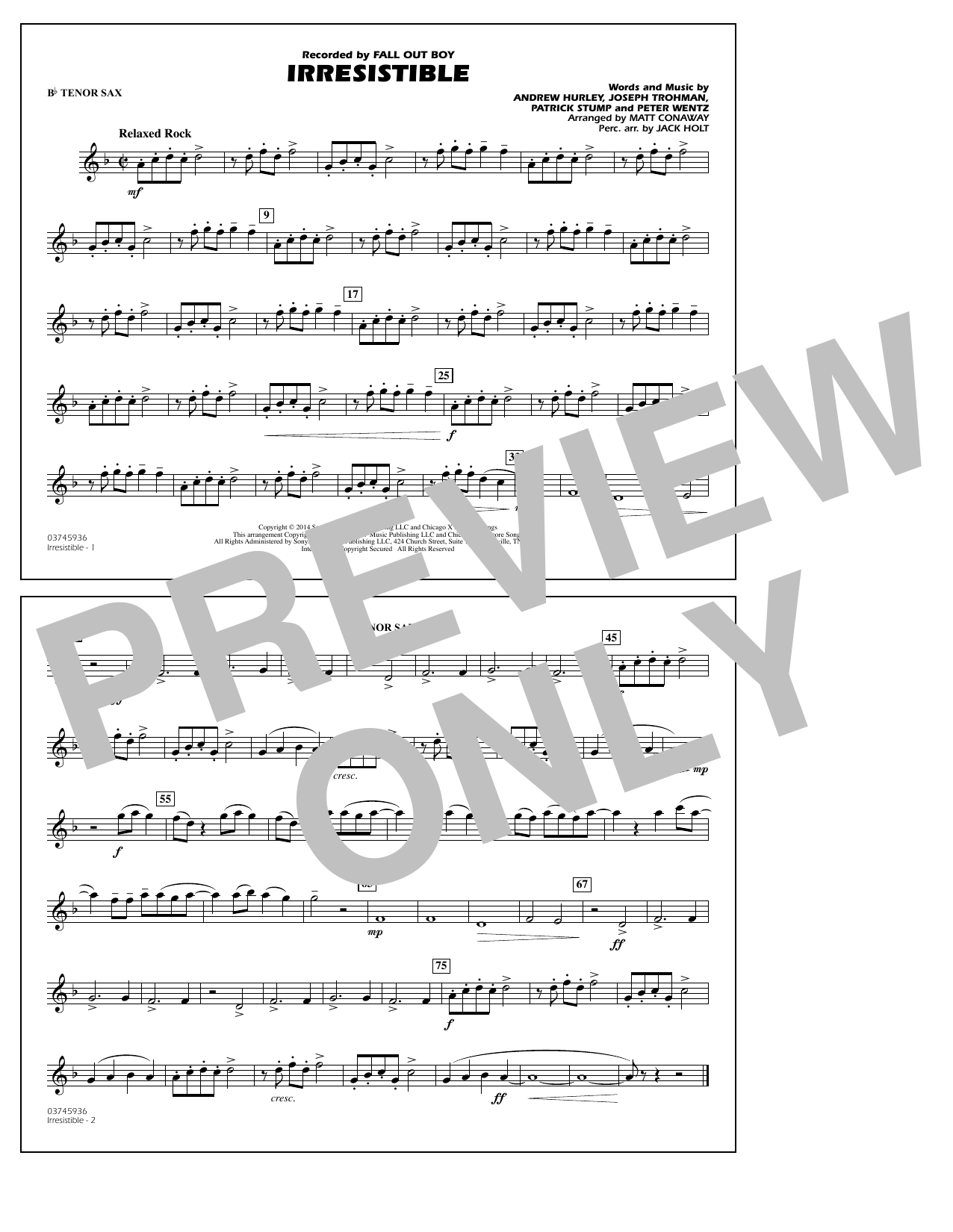Download or print Matt Conaway Irresistible - Bb Tenor Sax sheet music, chords and digital score arranged for Marching Band. This Pop score includes 1 page(s).