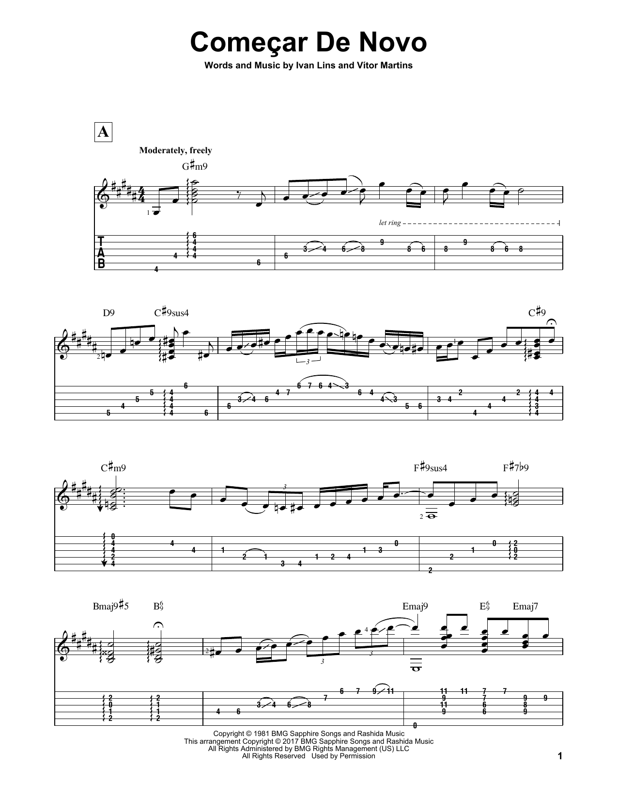 Download or print Matt Otten Comecar De Novo sheet music, chords and digital score arranged for Solo Guitar. This Jazz score includes 5 page(s).