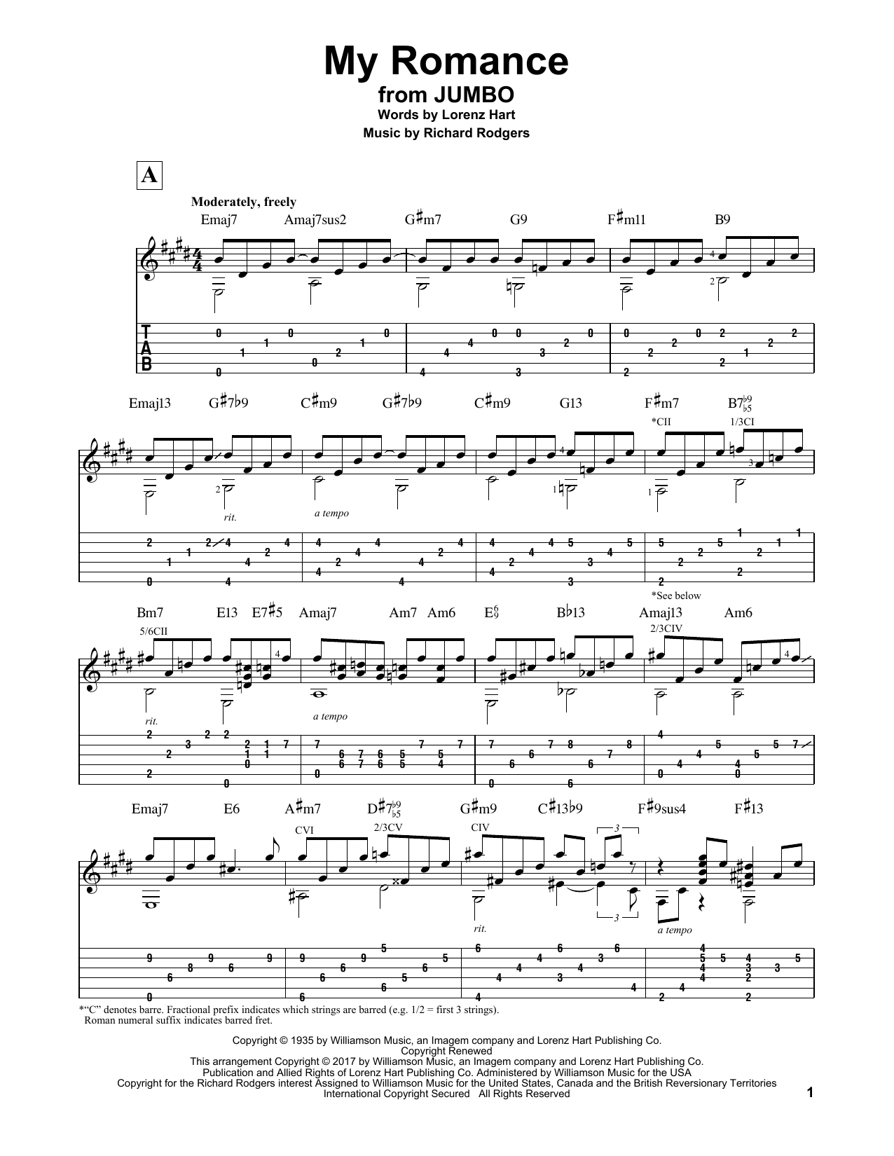 Download or print Matt Otten My Romance sheet music, chords and digital score arranged for Solo Guitar. This Jazz score includes 4 page(s).