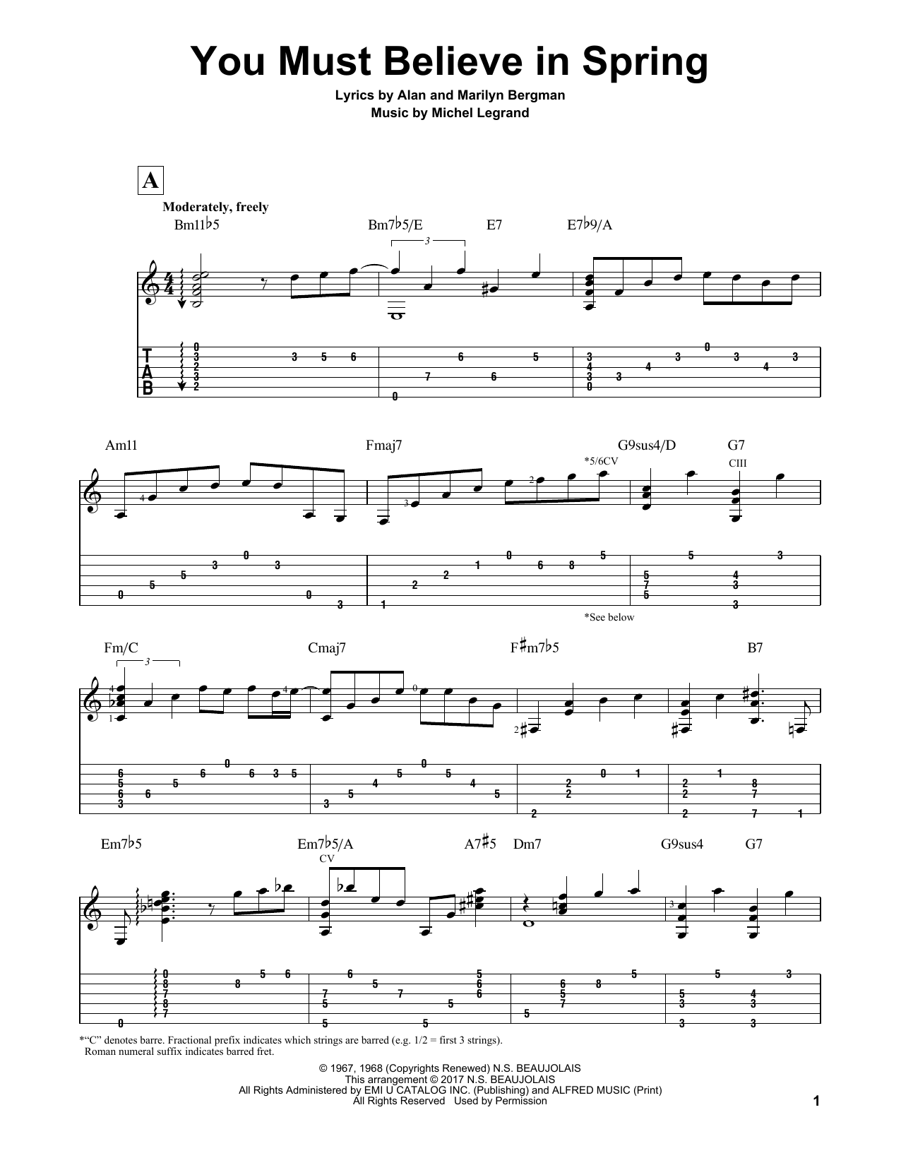 Download or print Michel LeGrand You Must Believe In Spring (arr. Matt Otten) sheet music, chords and digital score arranged for Solo Guitar. This Jazz score includes 8 page(s).
