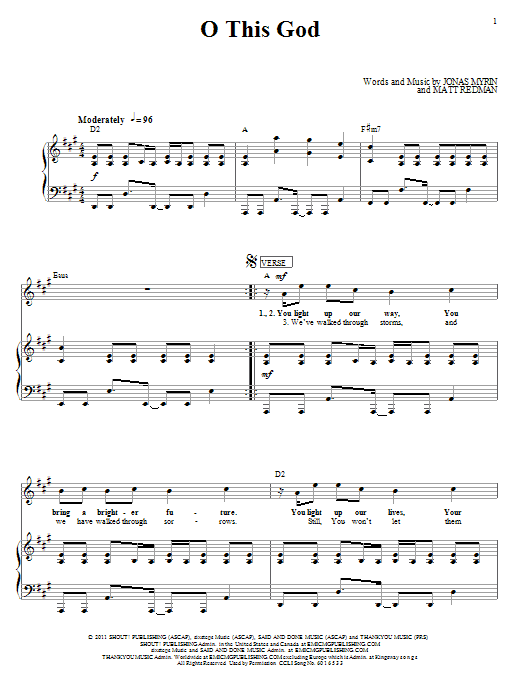Download or print Matt Redman O This God sheet music, chords and digital score arranged for Piano, Vocal & Guitar Chords (Right-Hand Melody). This Pop score includes 7 page(s).