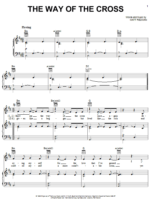 Download or print Matt Redman The Way Of The Cross sheet music, chords and digital score arranged for Piano, Vocal & Guitar Chords (Right-Hand Melody). This Christian score includes 6 page(s).