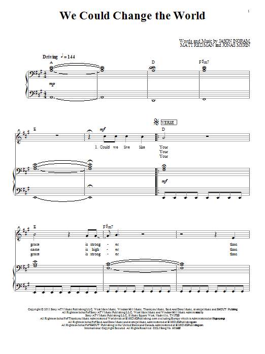 Download or print Matt Redman We Could Change The World sheet music, chords and digital score arranged for Piano, Vocal & Guitar Chords (Right-Hand Melody). This Pop score includes 8 page(s).