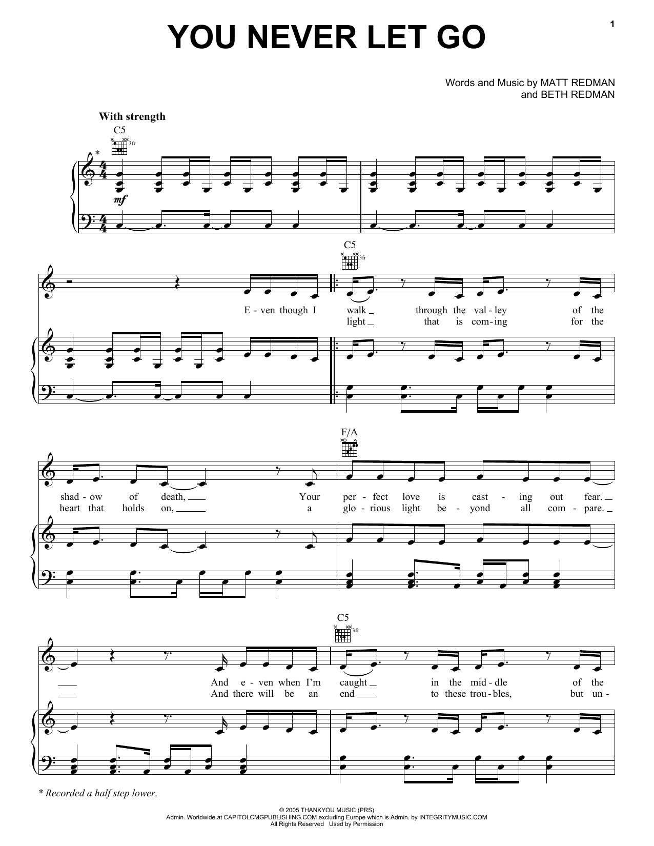 Download or print Matt Redman You Never Let Go sheet music, chords and digital score arranged for Easy Piano. This Christian score includes 6 page(s).