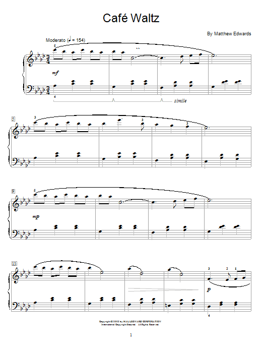Download or print Matthew Edwards Cafe Waltz sheet music, chords and digital score arranged for Educational Piano. This Children score includes 4 page(s).