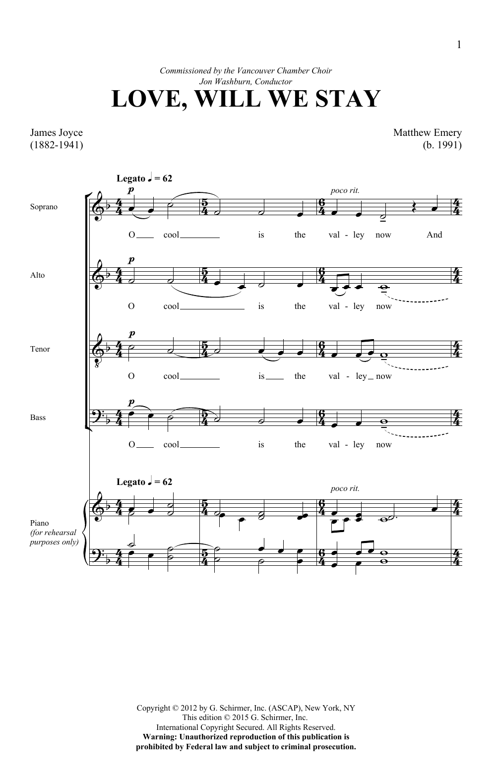 Download or print Matthew Emery Love, Will We Stay sheet music, chords and digital score arranged for SATB Choir. This Pop score includes 6 page(s).