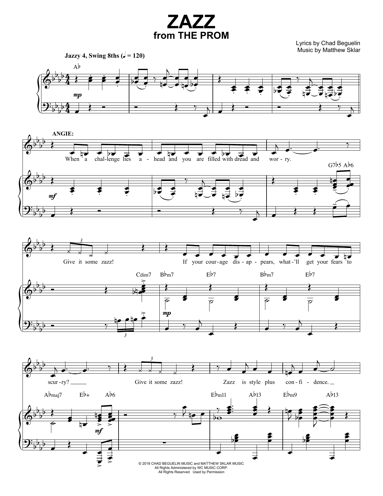 Download or print Matthew Sklar & Chad Beguelin Zazz (from The Prom: A New Musical) sheet music, chords and digital score arranged for Piano & Vocal. This Film/TV score includes 5 page(s).