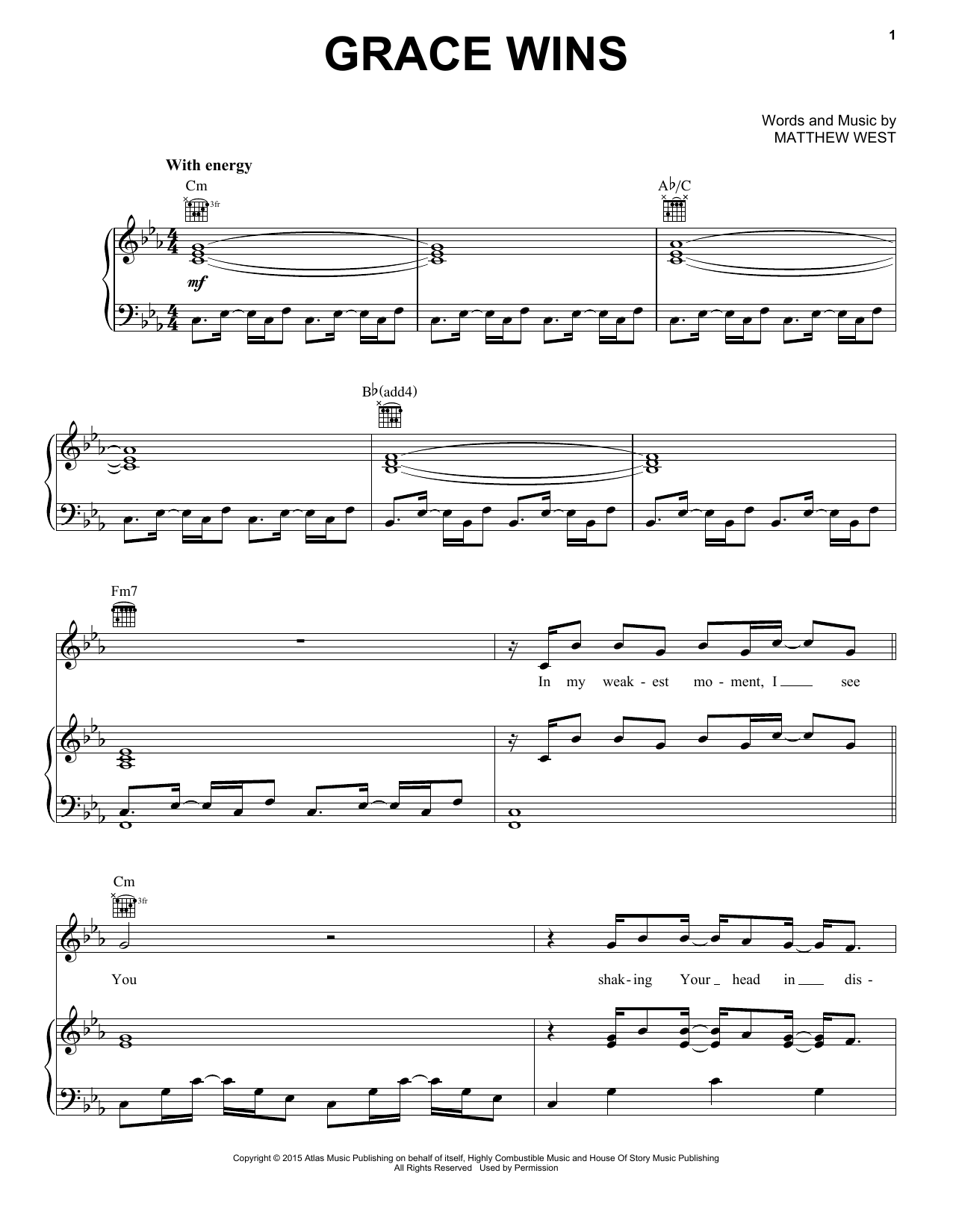 Download or print Matthew West Grace Wins sheet music, chords and digital score arranged for Piano, Vocal & Guitar Chords (Right-Hand Melody). This Pop score includes 9 page(s).