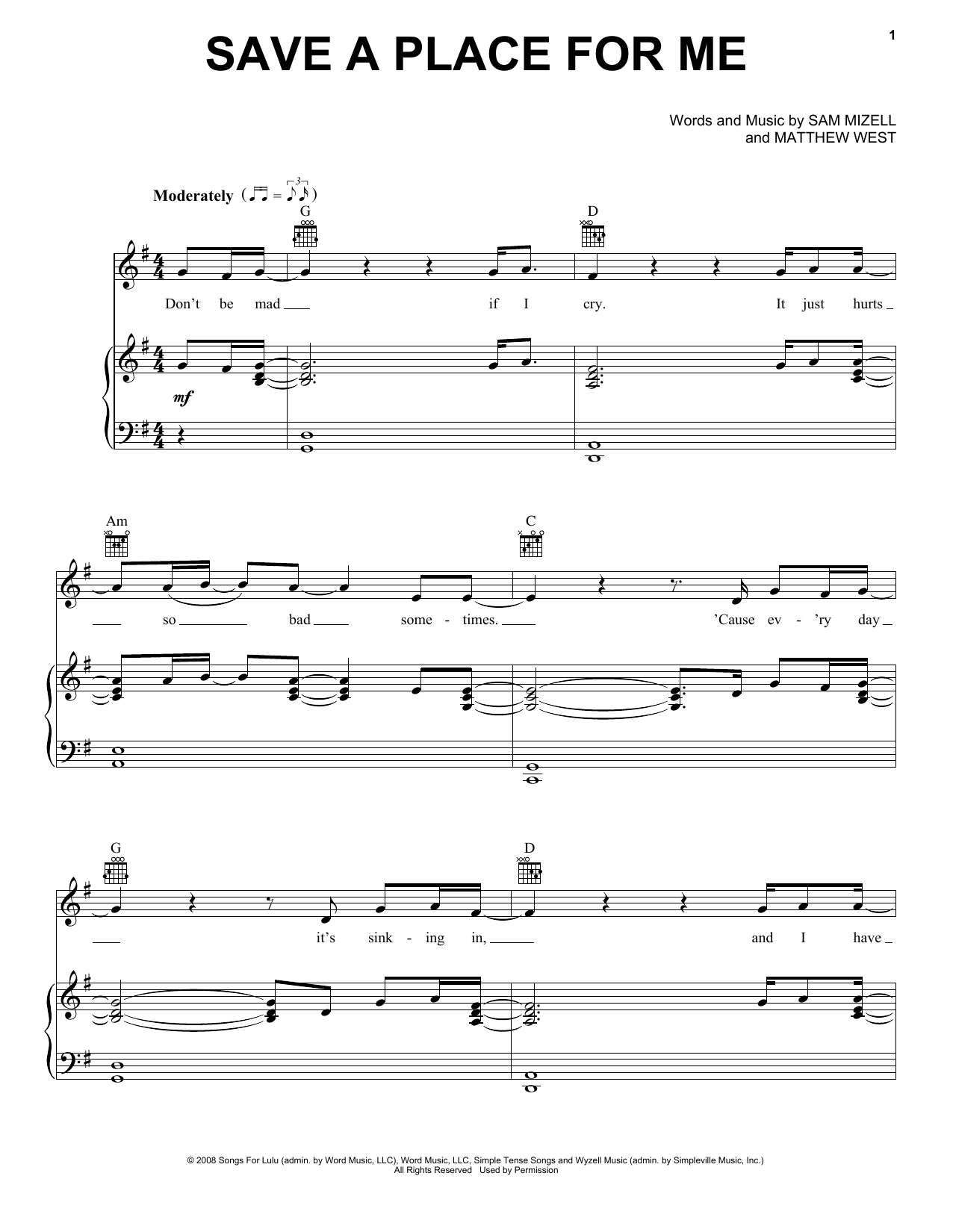 Download or print Matthew West Save A Place For Me sheet music, chords and digital score arranged for Piano, Vocal & Guitar Chords (Right-Hand Melody). This Classical score includes 7 page(s).