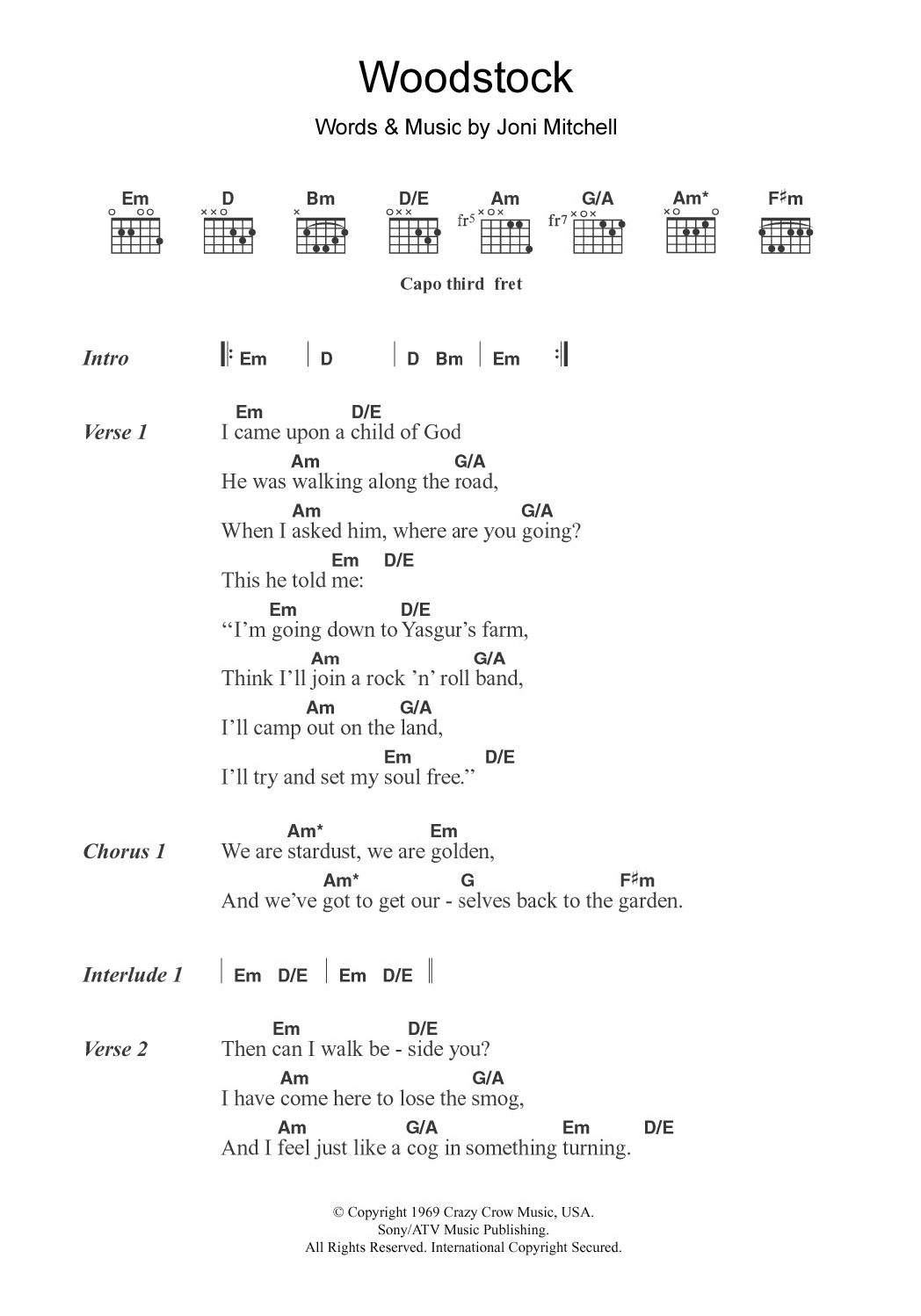 Download or print Matthews Southern Comfort Woodstock sheet music, chords and digital score arranged for Guitar Chords/Lyrics. This Pop score includes 2 page(s).
