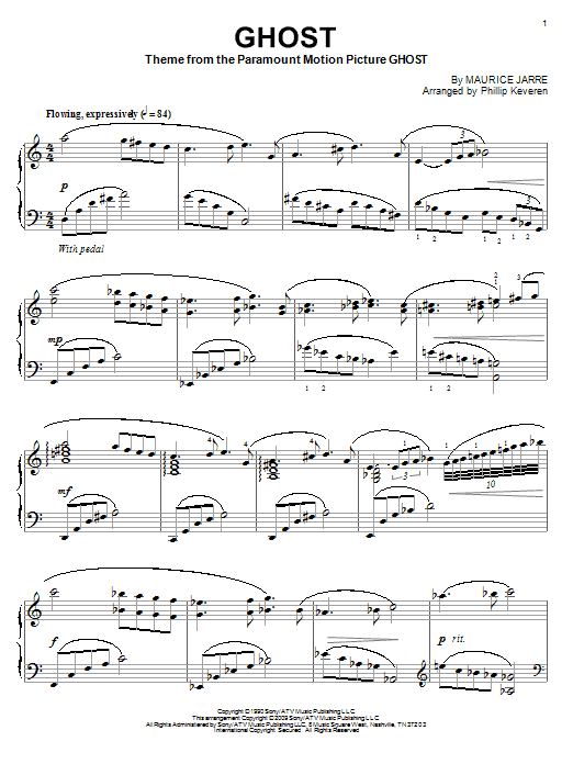 Download or print Maurice Jarre Ghost (arr. Phillip Keveren) sheet music, chords and digital score arranged for Piano Solo. This Film/TV score includes 4 page(s).