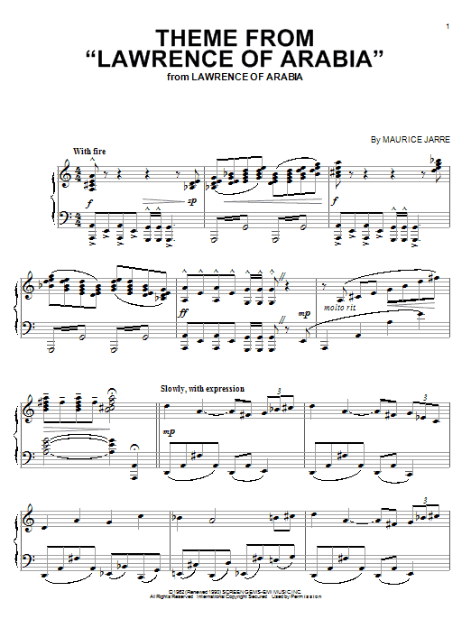 Download or print Maurice Jarre Theme From "Lawrence Of Arabia" sheet music, chords and digital score arranged for Trumpet and Piano. This Pop score includes 5 page(s).