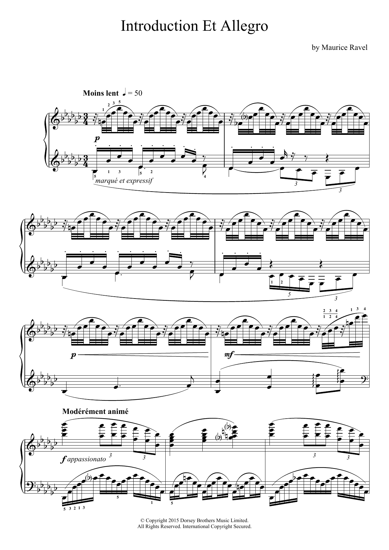 Download or print Maurice Ravel Introduction Et Allegro sheet music, chords and digital score arranged for Piano Solo. This Classical score includes 7 page(s).