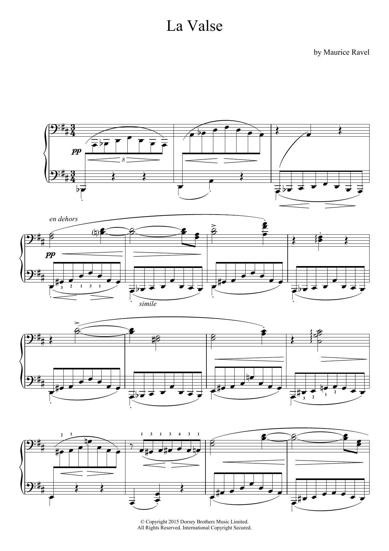 Download or print Maurice Ravel La Valse sheet music, chords and digital score arranged for Piano Solo. This Classical score includes 7 page(s).