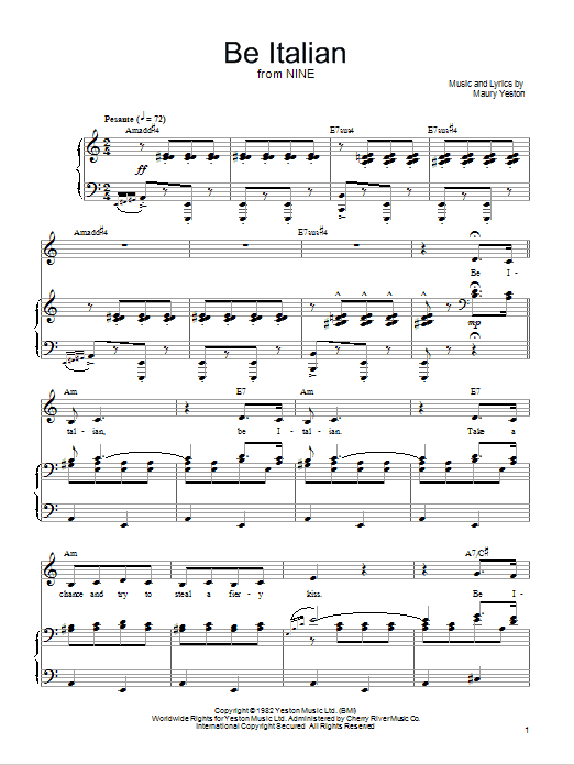Download or print Maury Yeston Be Italian sheet music, chords and digital score arranged for Easy Piano. This Film/TV score includes 4 page(s).
