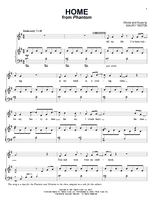 Download or print Maury Yeston Home sheet music, chords and digital score arranged for Piano & Vocal. This Musical/Show score includes 14 page(s).