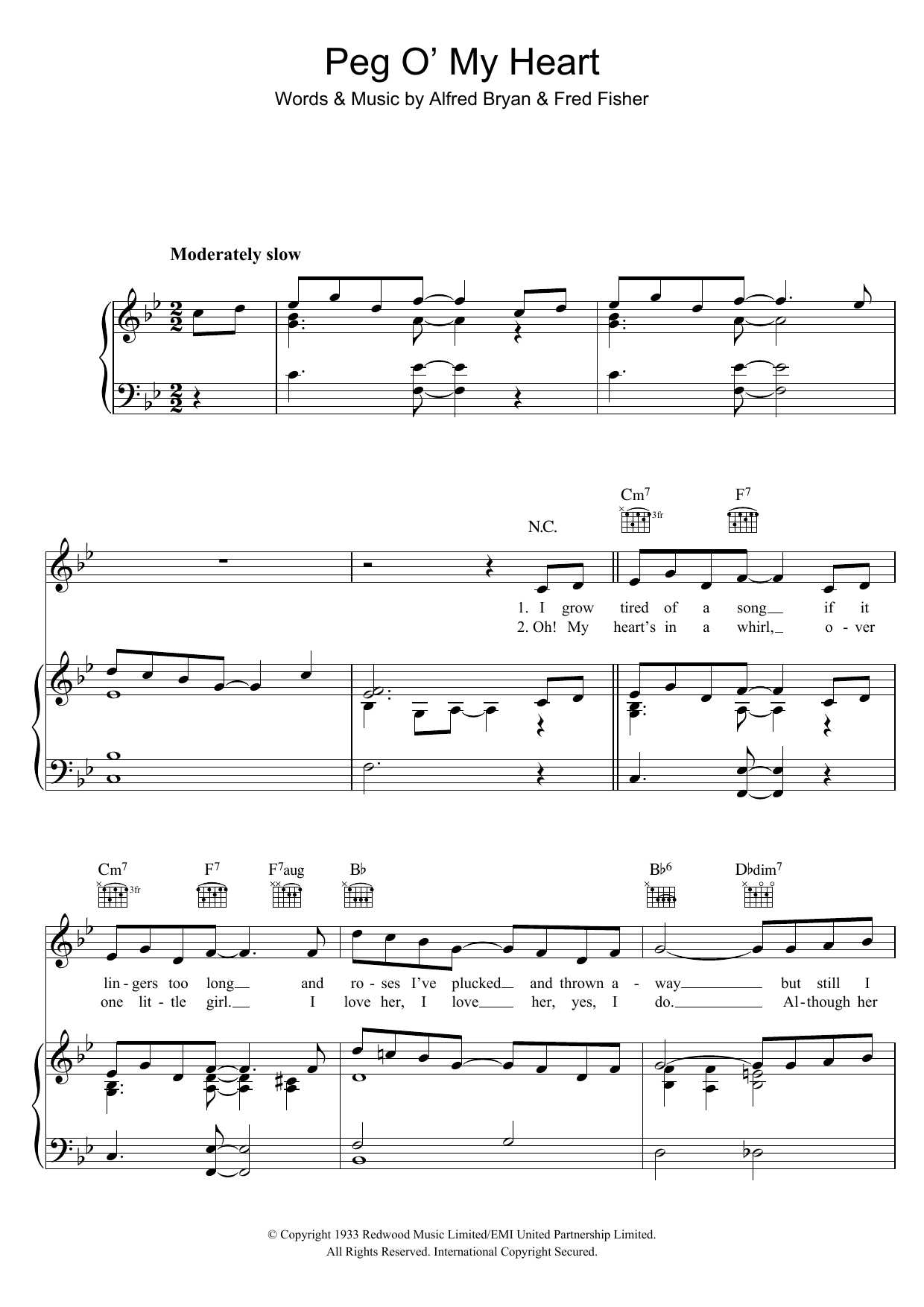 Download or print Max Harris Peg O' My Heart sheet music, chords and digital score arranged for Piano, Vocal & Guitar Chords (Right-Hand Melody). This Standards score includes 4 page(s).