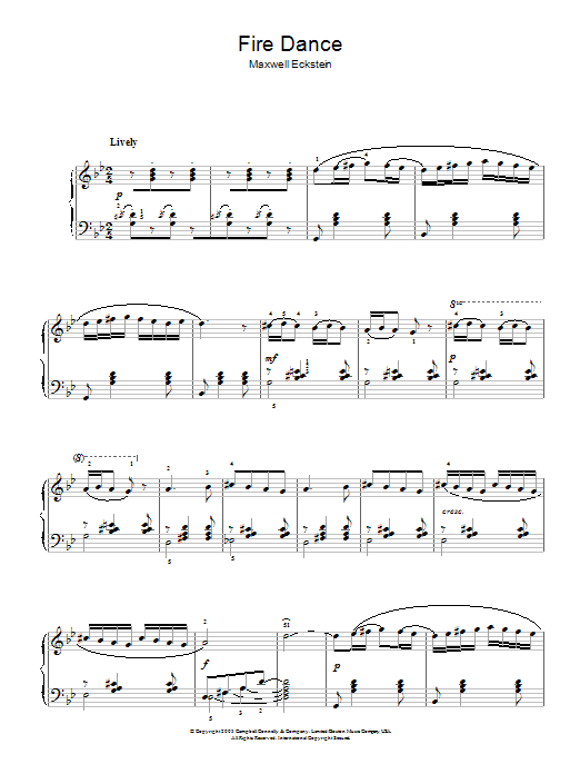Download or print Maxwell Eckstein Fire Dance sheet music, chords and digital score arranged for Piano Solo. This Classical score includes 3 page(s).
