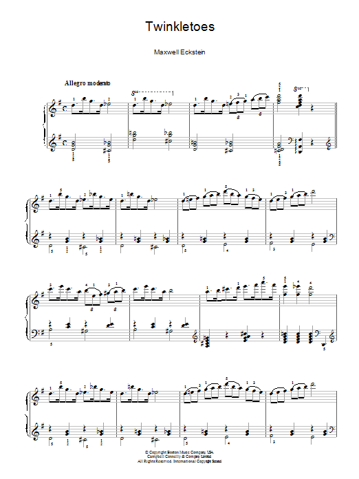 Download or print Maxwell Eckstein Twinkletoes sheet music, chords and digital score arranged for Piano Solo. This Classical score includes 6 page(s).