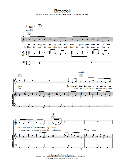 Download or print McFly Broccoli sheet music, chords and digital score arranged for Piano, Vocal & Guitar Chords. This Pop score includes 5 page(s).