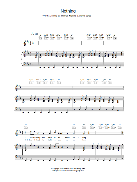 Download or print McFly Nothing sheet music, chords and digital score arranged for Piano, Vocal & Guitar Chords. This Pop score includes 6 page(s).