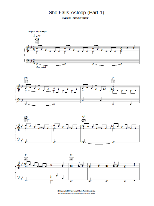 Download or print McFly She Falls Asleep Part 1 sheet music, chords and digital score arranged for Piano, Vocal & Guitar Chords. This Pop score includes 2 page(s).