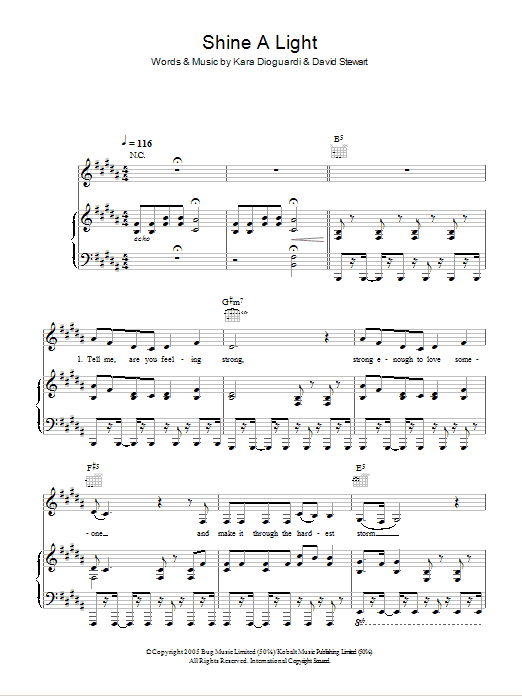 Download or print McFly featuring Taio Cruz Shine A Light sheet music, chords and digital score arranged for Piano, Vocal & Guitar Chords. This Pop score includes 6 page(s).
