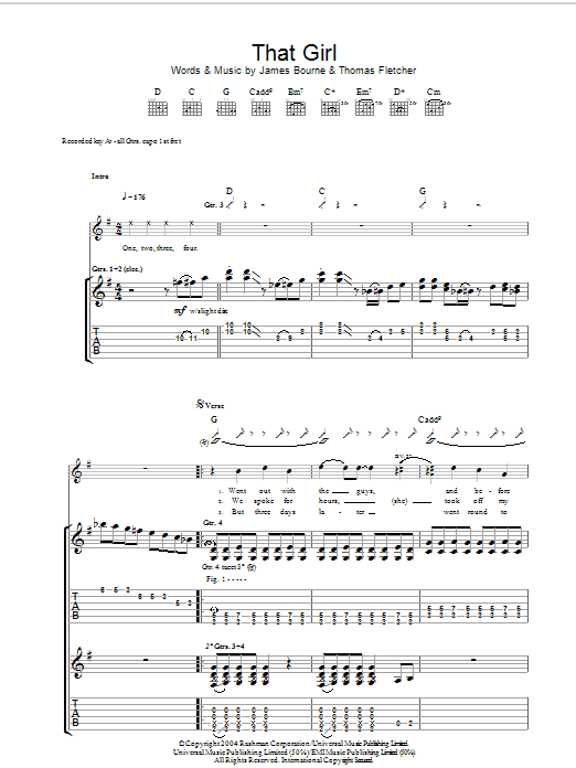 Download or print McFly That Girl sheet music, chords and digital score arranged for Piano, Vocal & Guitar Chords. This Pop score includes 7 page(s).
