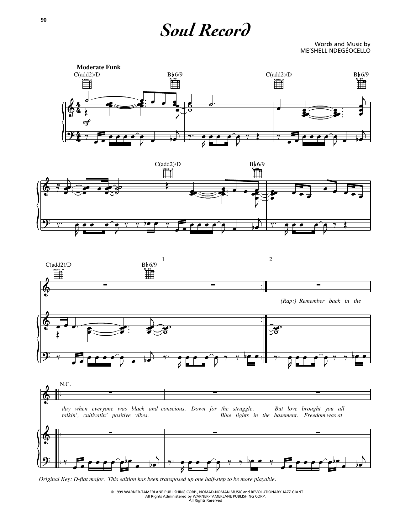 Download or print Me'Shell Ndegeocello Soul Record sheet music, chords and digital score arranged for Piano, Vocal & Guitar Chords (Right-Hand Melody). This Rock score includes 7 page(s).