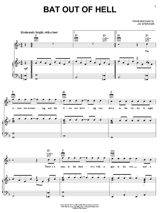 Download or print Meat Loaf Bat Out Of Hell sheet music, chords and digital score arranged for Guitar Chords/Lyrics. This Rock score includes 5 page(s).