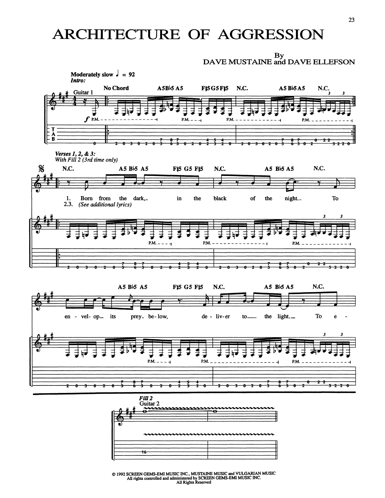 Download or print Megadeth Architecture Of Aggression sheet music, chords and digital score arranged for Guitar Tab. This Metal score includes 7 page(s).