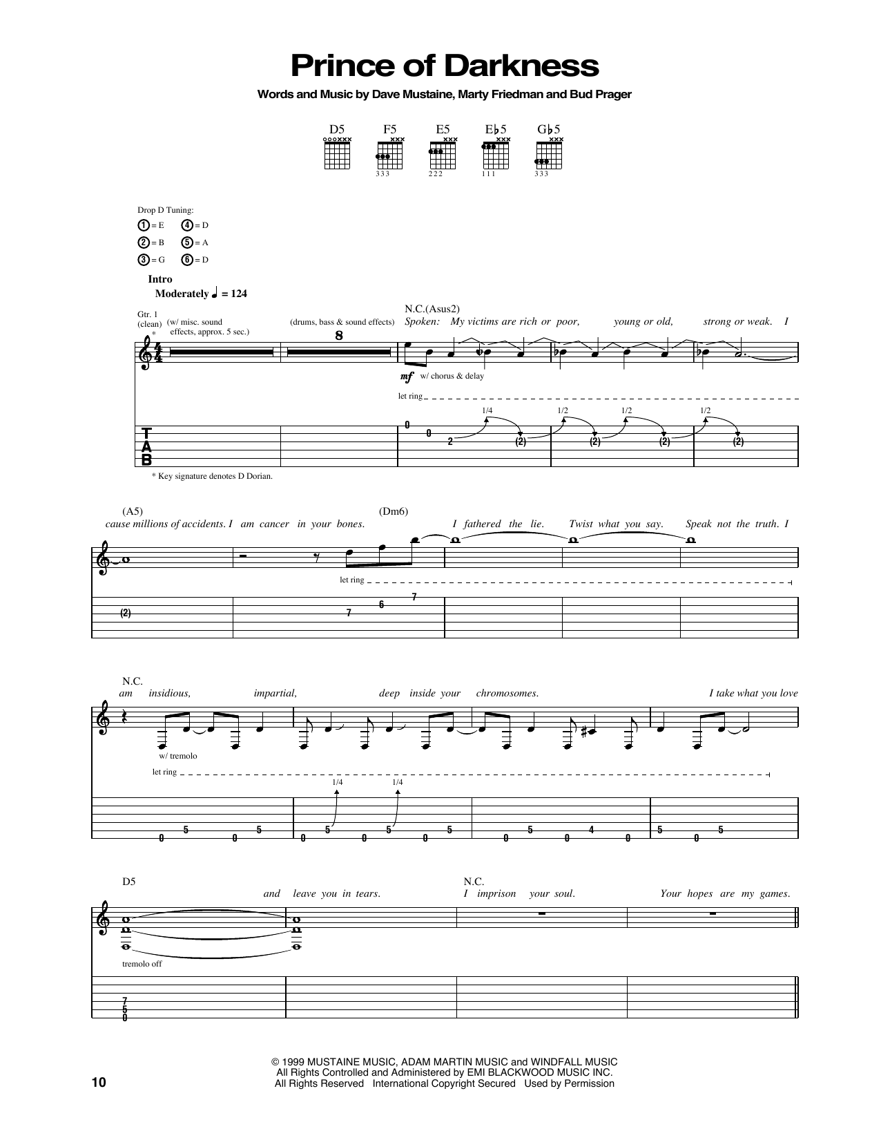 Download or print Megadeth Prince Of Darkness sheet music, chords and digital score arranged for Guitar Tab. This Metal score includes 9 page(s).