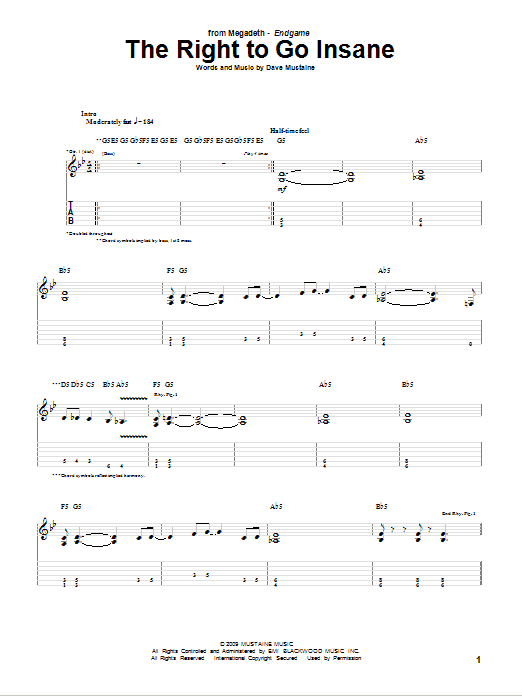 Download or print Megadeth The Right To Go Insane sheet music, chords and digital score arranged for Guitar Tab. This Metal score includes 8 page(s).