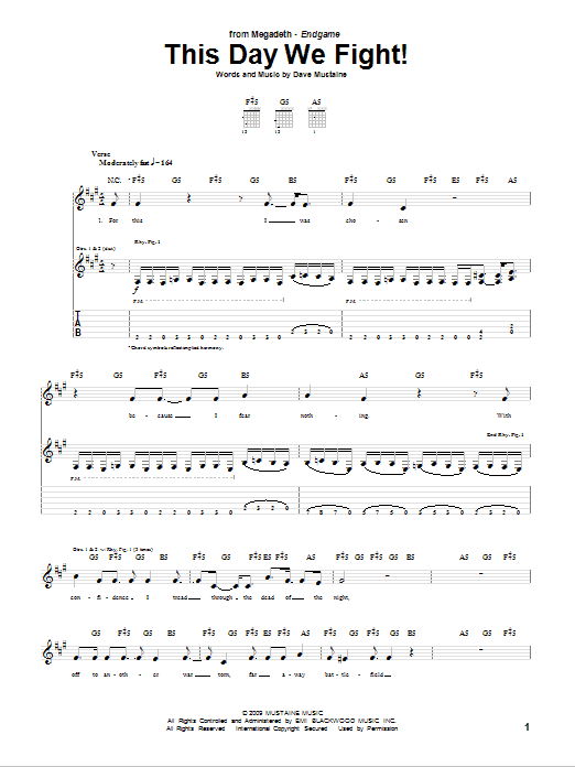 Download or print Megadeth This Day We Fight! sheet music, chords and digital score arranged for Guitar Tab. This Metal score includes 12 page(s).