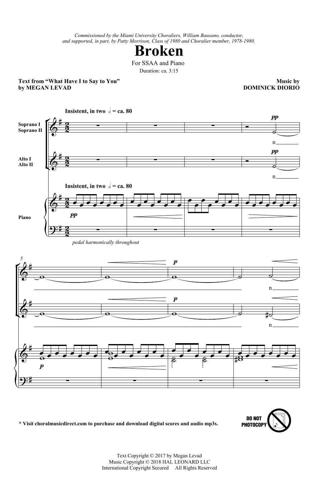 Download or print Megan Levad & Dominick DiOrio Broken sheet music, chords and digital score arranged for SSA Choir. This Concert score includes 10 page(s).