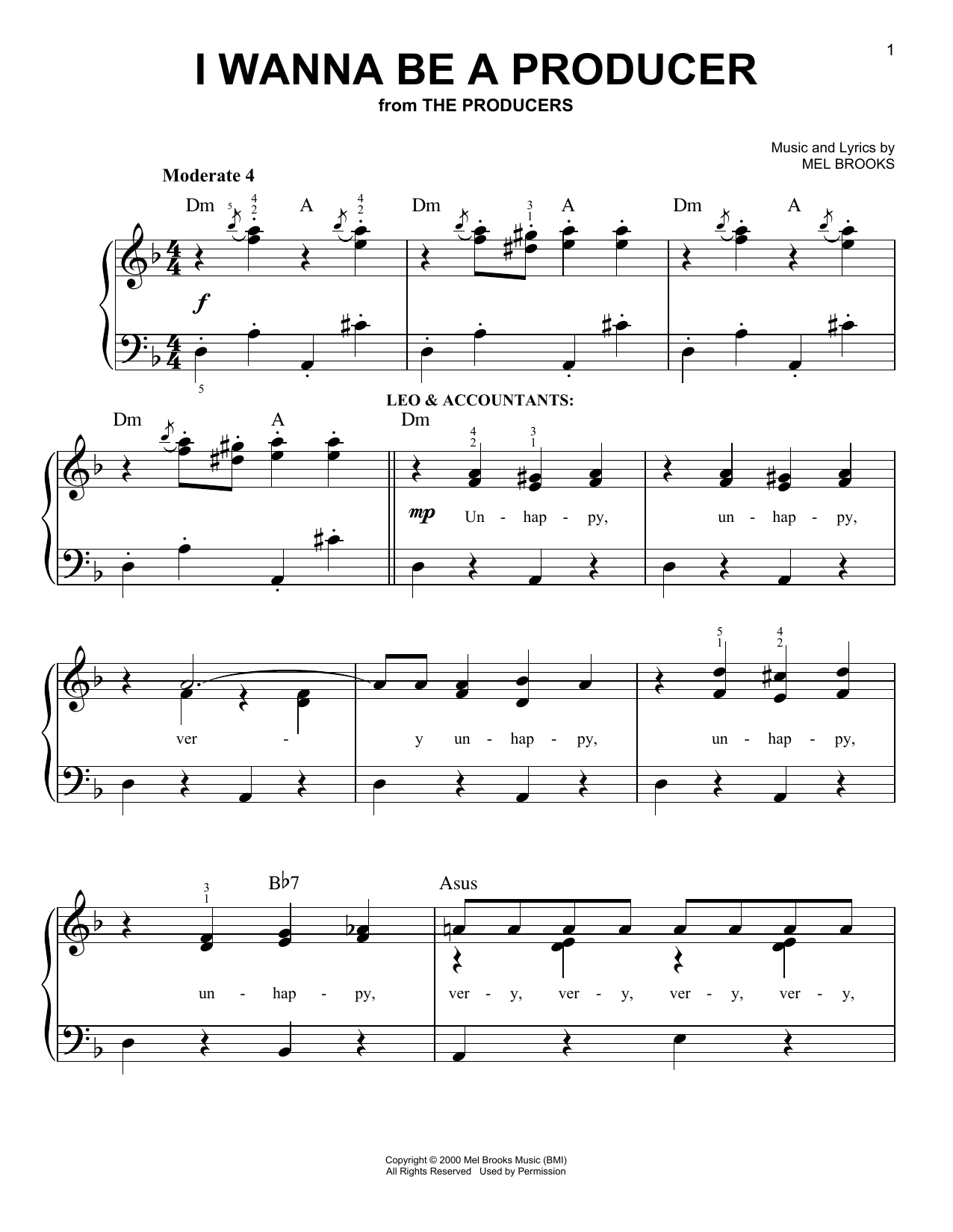 Download or print Mel Brooks I Wanna Be A Producer sheet music, chords and digital score arranged for Big Note Piano. This Film/TV score includes 7 page(s).
