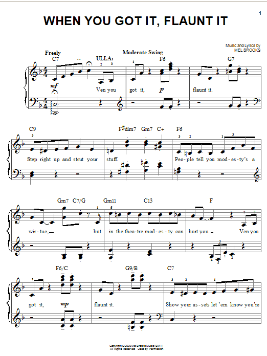 Download or print Mel Brooks When You Got It, Flaunt It sheet music, chords and digital score arranged for Piano, Vocal & Guitar Chords (Right-Hand Melody). This Musical/Show score includes 7 page(s).